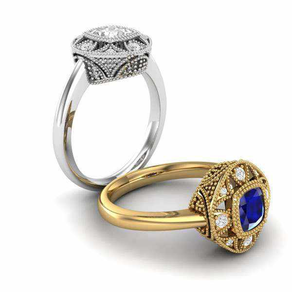 CU1/6.30x6.10x4.60MM BLUE (STONE NOT INCLUDED) RD8/0.10CTS 14KW CENTER STONE WILL BE A ROUND AS WE CHANGE THIS DESIGN